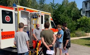 Am Dienstag wurde das Planspiel „beachmanager“ durchgeführt, bei dem die Gymnasiasten in die Rolle der Geschäftsführer eines virtuellen Wassersportcenters geschlüpft sind und versuchen mussten, den Betrieb über mehrere Spielrunden hinweg auf Kurs zu halten. Am Mittwoch erhielten die Schüler*innen bspw. eine Einführung in die Bildbearbeitung mit GIMP, installierten kleine „Calliope Roboter“ oder lernten mehr über die Arbeit im Social Media Bereich. Während des Berufsfeldes „Gesundheit & Soziales“ waren die Johanniter und das Deutsche Rote Kreuz mit einem Rettungswagen vor Ort und gaben einen Crashkurs in Erste Hilfe. Unsere Lehrkräfte der Heilerziehungspflege/-hilfe führten Praxisübungen mit den Schüler*innen durch, indem Sie gemeinsam Fangbecher bastelten. Die Lehrkräfte unserer Pflegeschule in Forchheim zeigten etwas zum Thema Altenpflege. Am letzten Tag konnten die Gymnasiasten noch in das Berufsfeld „Elektro“ hineinschnuppern und mehr zum Thema Installation, beispielsweise im Solarbereich, lernen.