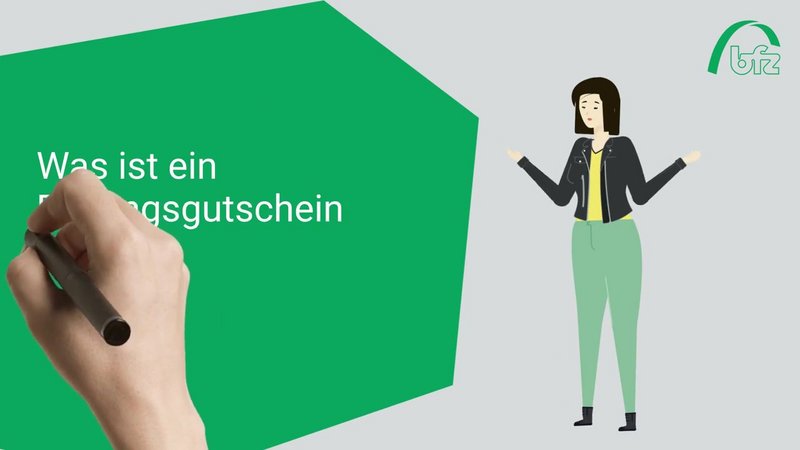 „Jetzt kann Sabine mit dem Bildungsgutschein ihre Wunsch-Weiterbildung starten. Aber Achtung, der Bildungsgutschein muss innerhalb von 3 Monaten eingelöst werden, sonst verliert er seine Gültigkeit.“