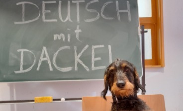 Adrian Schüller, Dozent für Sprach- und Kulturphilosophie, ist seit Mitte September an den Beruflichen Fortbildungszentren der Bayerischen Wirtschaft (bfz) in Günzburg und Dillingen im Einsatz. Dort hat er Seminarleitungen für den Bereich "Deutsch als Fremdsprache" übernommen. Bei seiner täglichen Arbeit in den bfz begleitet ihn stets Rauhaardackel Lemmy. Der geprüfte und zertifzierte Begleithund wurde als offizieller Schulhund deklariert und zeigt als fester Bestandteil der Unterrichtsklassen seinen pädagogischen Wert für die Teilnehmer*innen. Ziel ist es, für eine entspannte Atmosphäre im Klassenzimmer zu sorgen und ängstliche Hundeskeptiker*innen an die Gegenwart von Hunden zu gewöhnen. Zu diesem Zweck darf Lemmy gestreichelt und ausgeführt werden. Bereits einige Teilnehmer*innen, die sich trotz Angst vor Hunden offen für das Konzept gezeigt haben, profitierten vom freundlichen und rücksichtsvollen Verhalten des kleinen Hundes.