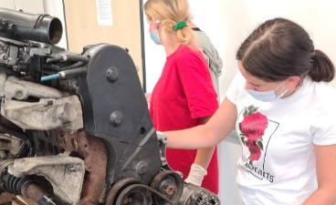 Im Rahmen des Berufsorientierungsprogrammes (BOP) der Beruflichen Fortbildungszentren der Bayerischen Wirtschaft (bfz) entdecken Schüler*innen, welche Berufsbilder für sie in Frage kommen und wo ihre Stärken liegen. So auch am Ende des vergangenen Schuljahres in den bfz Marktredwitz: Schüler*innen der Otto-Wels-Mittelschule in Mitterteich nahmen dort an den Werkstatttagen teil. Dabei schnupperten sie in die Berufsfelder Küche, Elektronik und Kfz-Mechatronik. Gerade die Mädchen sollten für technische Berufe begeistert werden. Wie auf dem Foto zu sehen, übten sich die Mittelschüler*innen unter anderem im Zerlegen eines Elektromotors.