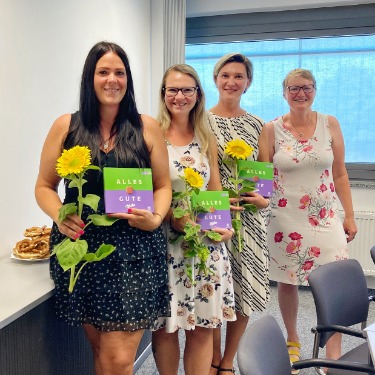 Die drei Absolvent*innen haben an der Teilzeit-Umschulung mit Live-Online-Unterricht teilgenommen. Bei dieser Lernmethode waren die Teilnehmerinnen an den Beruflichen Fortbildungszentren der Bayerischen Wirtschaft (bfz) in Ingolstadt vor Ort. Dort konnten sie sich mit der Technik in ein virtuelles Klassenzimmer einloggen. Lernprozessbegleiterin Eva Hacker unterstützte sie beim Umgang mit den Medien und bei sonstigen administrativen Fragen. Der Unterricht wurde in Echtzeit virtuell abgehalten. Praktikumsphasen ergänzten die hybride Weiterbildung in Teilzeit.