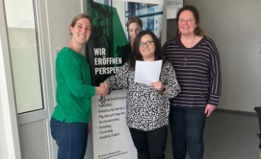 Bereits nach drei Monaten als Teilnehmerin in der Coachingmaßnahme „Start Work“, die auf Basis eines Aktivierungs- und Vermittlungsgutscheins besucht werden kann, hält Frau Würl stolz ihren Arbeitsvertrag in der Hand. Seit 02. Mai 2023 ist sie in den Beruflichen Fortbildungszentren (bfz) am Standort Weiden in der Berufsorientierung.